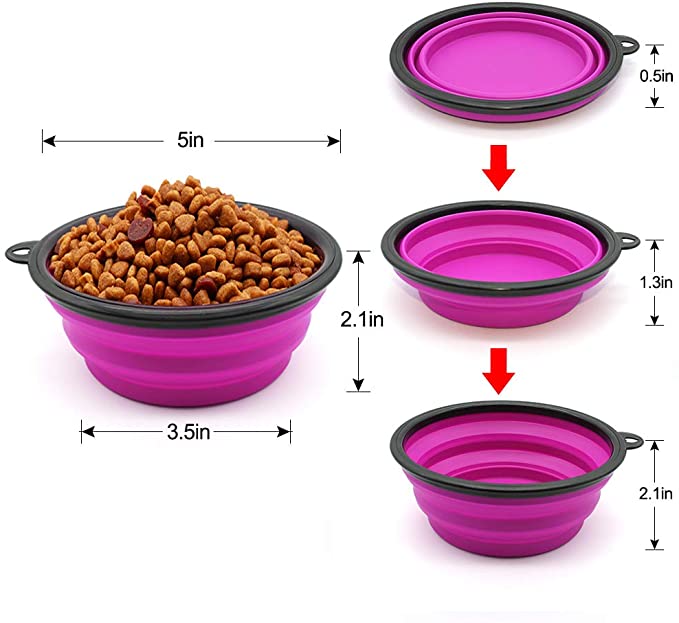 4. Suitable for Pet--Each bowl holds up to 12 fluid ounces of water or 1.5 cups of pet food, suitable for Small, Medium Dogs and Cats to store water and food when going outside.