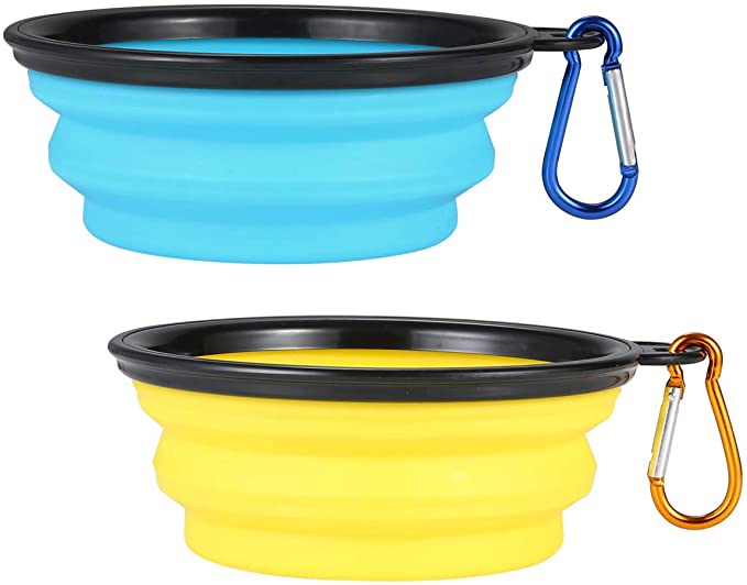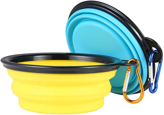 SLSON Collapsible Dog Bowl 2 Pack, Portable Silicone Pet Feeder, Foldable Expandable for Dog/Cat Food Water Feeding, Travel Bowl for Camping