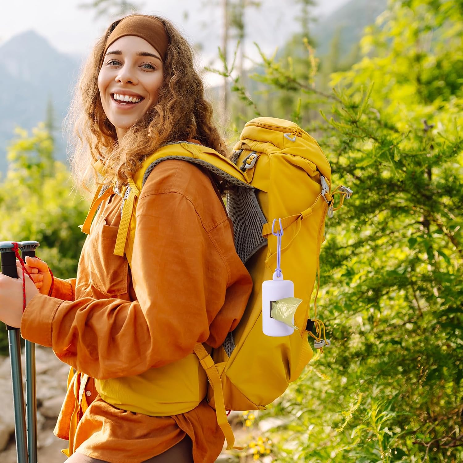 Soft material and more efficient space, say good bye to the piercing sound of metal collision, and one fit all size roll bags. These dog poop bag holder dispener with larger window to make it easy to withdraw bags. Perfect for pets walking,parking running and trips.