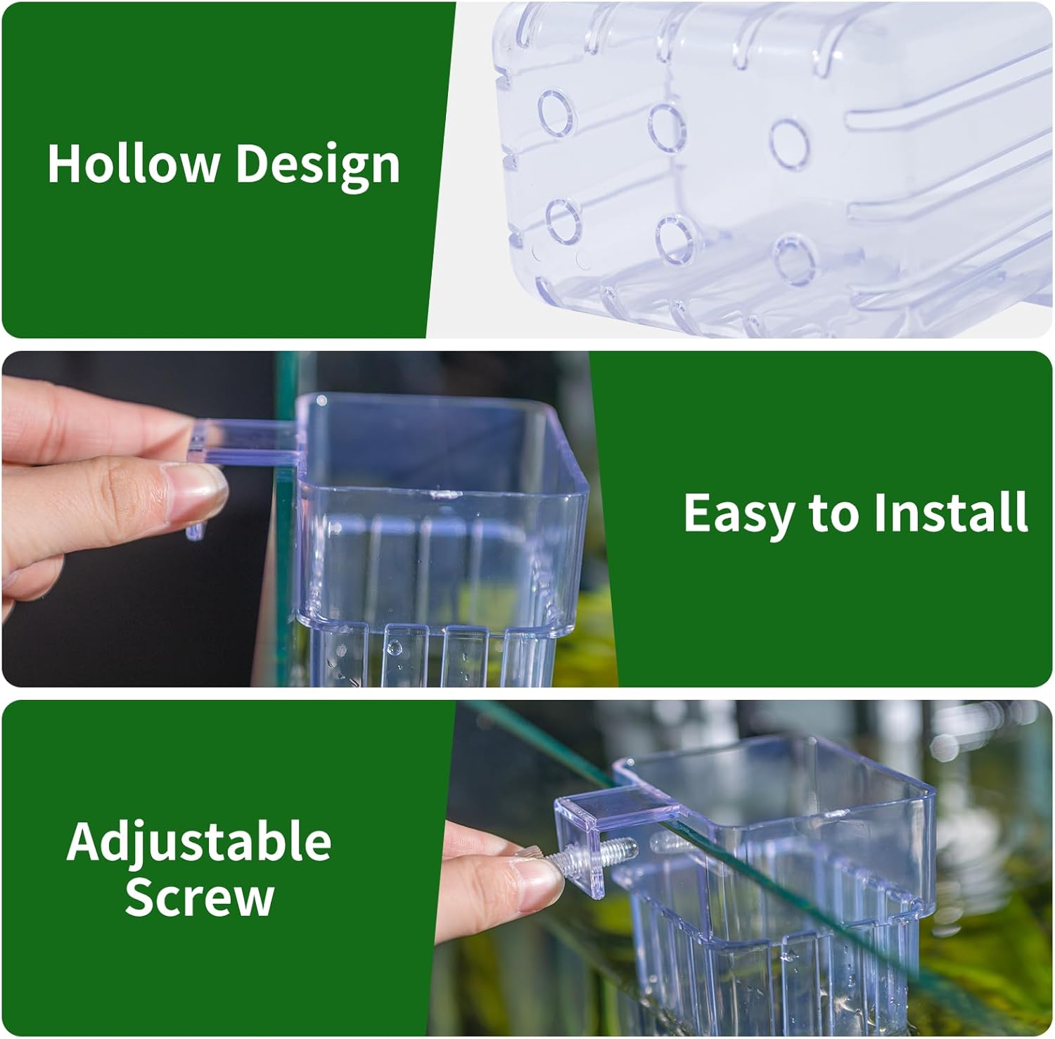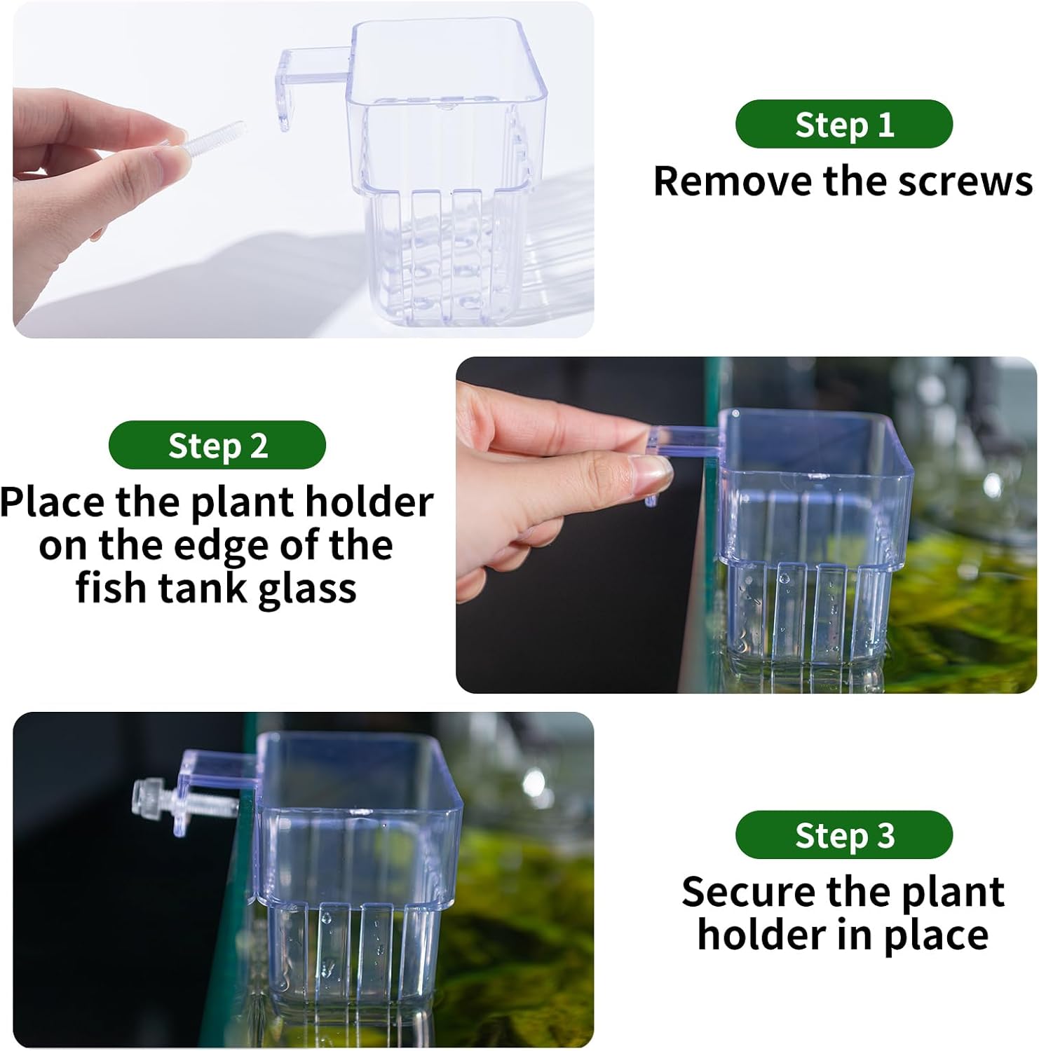 Transform your aquarium into a stunning underwater garden with these versatile transparent hanging plant holders. This 2-pack of aquatic planters comes complete with hooks and screws for easy installation in your fish tank. The clear design ensures these holders blend seamlessly into your aquascape while providing an ideal space for cultivating and displaying your favorite aquatic plants. Perfect for creating depth and visual interest in your tank, these holders allow you to arrange plants at different heights, adding a professional touch to your aquarium design. The transparent construction lets you monitor root health and growth while keeping your plants securely positioned. Whether you're an experienced aquascaper or just starting your underwater gardening journey, these practical plant holders make it simple to achieve the aquascape of your dreams. Suitable for various plant types and tank sizes, these holders are a must-have addition to your aquarium accessories.